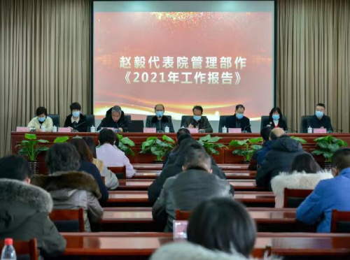 会上,董事长赵毅代表院管理部作了《2021年度工作报告》。报告对过去一年经营状况、临床业务开展、疫情防控、医护质量等方面进行了全面的总结,并对当前面临的主要问题作了分析。报告部署了今年四个方面重点工作:一是完善医保责任制度,加大医保管控力度;二是加强内涵建设,降低运营成本;三是加强医护质量安全,提升医疗整体水平;四是拓展临床业务发展。