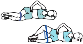 2. 蚌式开合:侧卧位,屈膝90°,缓慢打开膝盖再合拢,每组保持5秒,强化臀中肌(稳定骨盆)。